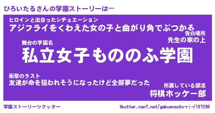 | 告白場所 先生の家の上 …「ふぃぎゅこ」 | 2月17日 06:24 |