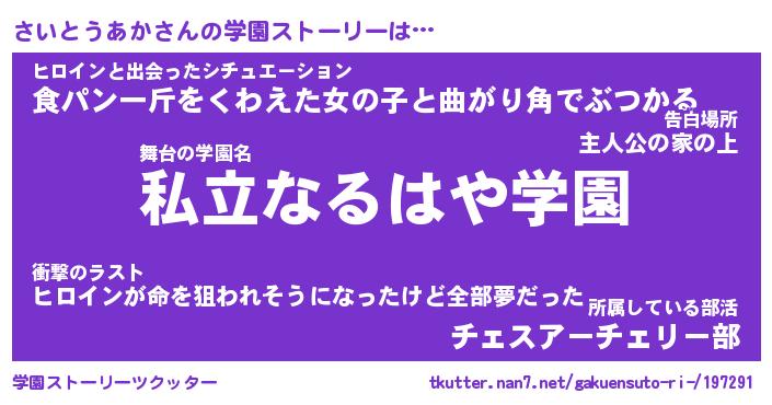 | 男性向けラノベタイトル風あだ名 | 『さいとうあかの憂鬱』 |
