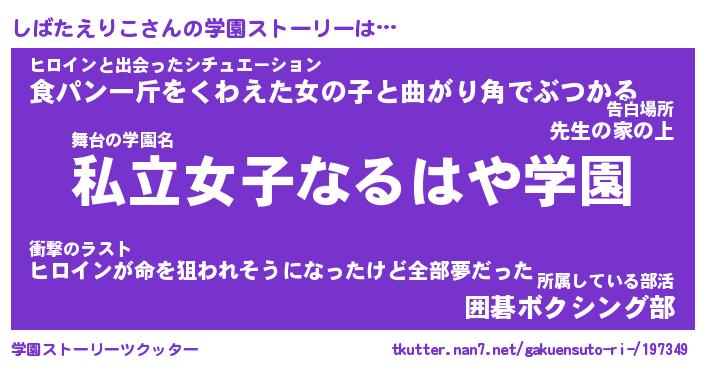 | 女子向けラノベタイトル風あだ名 | 『誰かこのしばたえりこを説明してください! ~契約から始まるウェディング~』 |