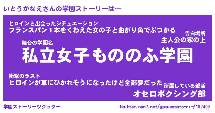 | 胡散臭い通販商品みたいなあだ名 | 『モテモテ間違いなしブレスレット…その名も「いとうかなえ」』 |