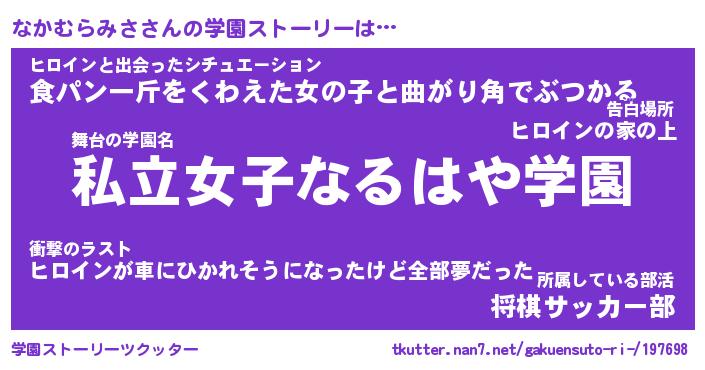 | 女子向けラノベタイトル風あだ名 | 『誰かこのなかむらみさを説明してください! ~契約から始まるウェディング~』 |