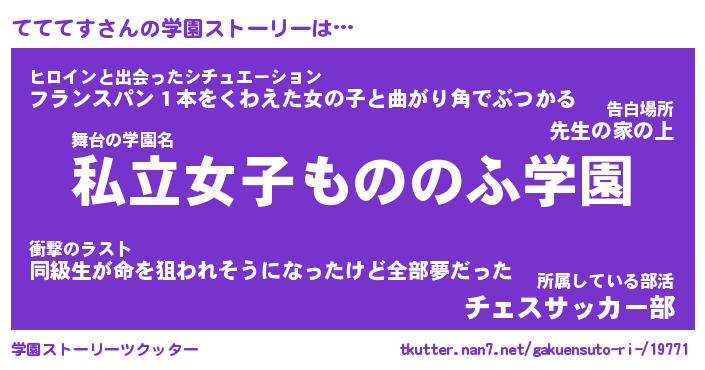 | 女子向けラノベタイトル風あだ名 | 『てててす姫と円卓の騎士』 |