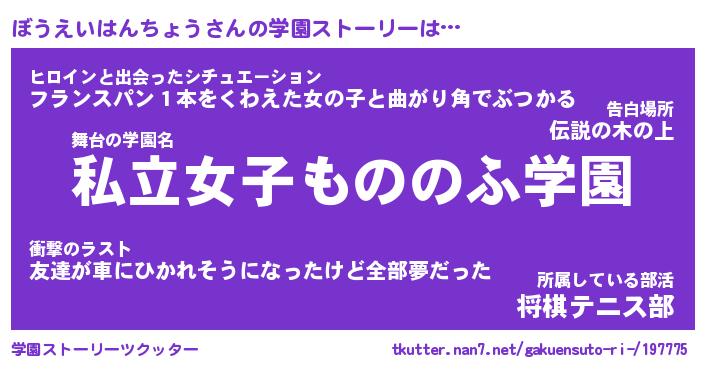 | 男性向けラノベタイトル風あだ名 | 『ボウエイハンチョウアートオンライン』 |
