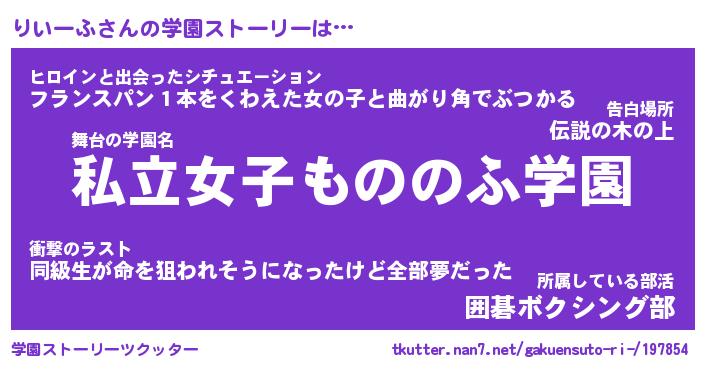 | ファンタジー風あだ名 | 『リイフェル』『エターナルリイーフー』 |
