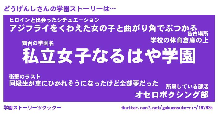 | 告白場所 先生の家の上 …「ふぃぎゅこ」 | 2月17日 06:24 |