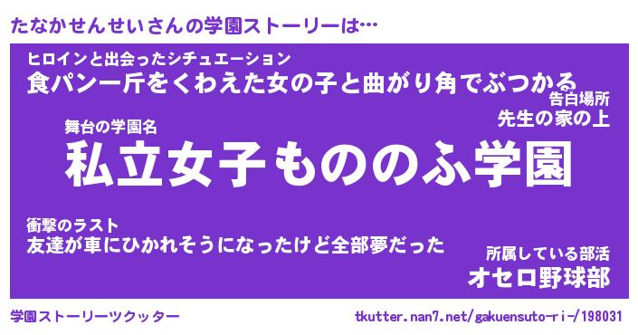 | 伝説のあだ名 | 『封印されし竜騎士たなかせんせい』 |