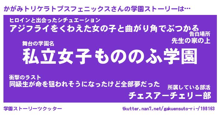 | 男性向けラノベタイトル風あだ名 | 『カガミトリケラトプスフェニックスアートオンライン』 |