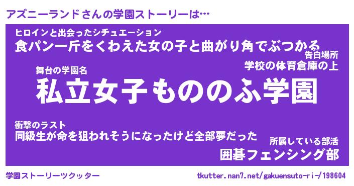 | 女子向けラノベタイトル風あだ名 | 『アズニーランド姫と円卓の騎士』 |