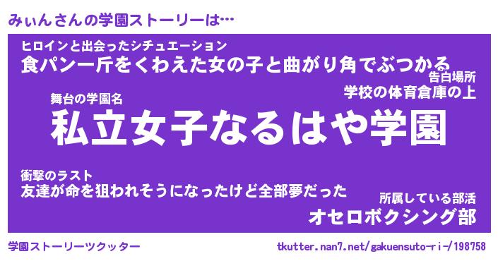 | 告白場所 先生の家の上 …「ふぃぎゅこ」 | 2月17日 06:24 |
