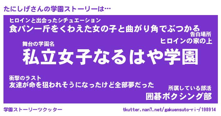 意味不明あだ名 | 『ペロリンたにしげ』『永久保存たにしげ』 |