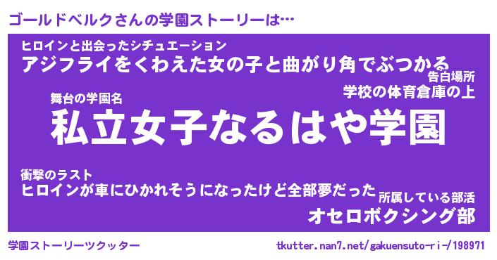 女子向けラノベタイトル風あだ名 | 『ゴールドベルク姫と円卓の騎士』 |