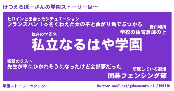 | 男性向けラノベタイトル風あだ名 | 『けつえるぼーの憂鬱』 |