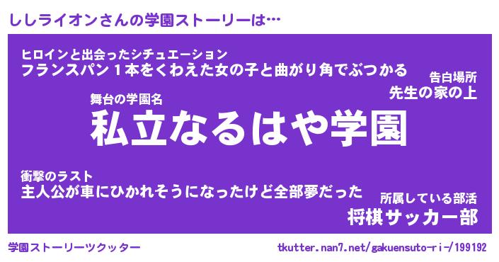 | 男性向けラノベタイトル風あだ名 | 『ししライオンの憂鬱』 |