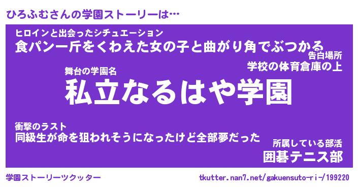 | 意味不明あだ名 | 『ペロリンひろふむ』『永久保存ひろふむ』 |