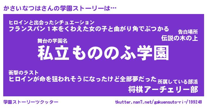 | 胡散臭い通販商品みたいなあだ名 | 『モテモテ間違いなし水晶球…その名も「かさいなつは」』 |