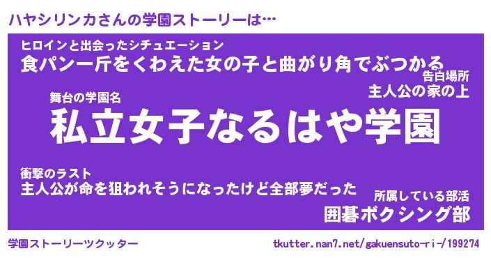 | 伝説のあだ名 | 『封印されしスナイパーハヤシリンカ』 |