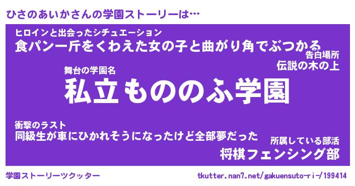 | 伝説のあだ名 | 『不死鳥の竜騎士ひさのあいか』 |