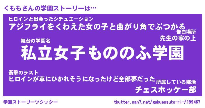 | ファンタジー風あだ名 | 『クモフェル』『エターナルクモモー』 |