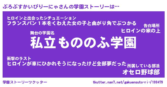 | 先生 | ぷろぷすかいぴりーにゃ先生が勤める学校名『国立もふもふ高校』 |