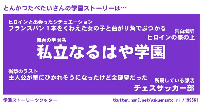 | 女子向けラノベタイトル風あだ名 | 『(仮)とんかつたべたいのやんごとなき事情』 |