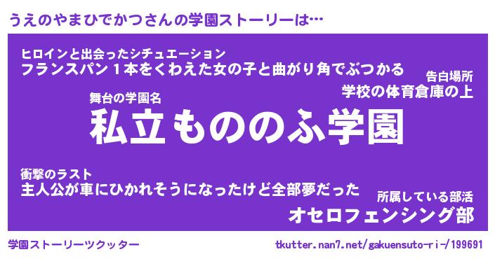 | 男性向けラノベタイトル風あだ名 | 『うえのやまひでかつの憂鬱』 |