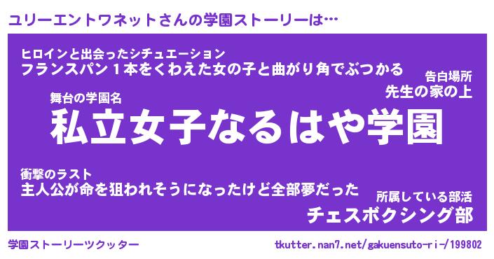 | 男性向けラノベタイトル風あだ名 | 『ユリーエントワネットアートオンライン』 |