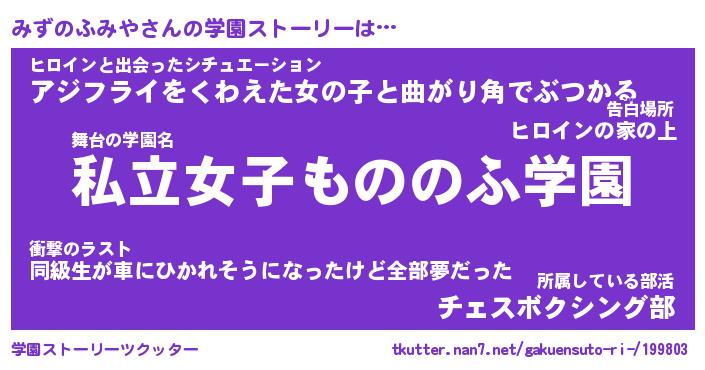 | 女子向けラノベタイトル風あだ名 | 『誰かこのみずのふみやを説明してください! ~契約から始まるウェディング~』 |
