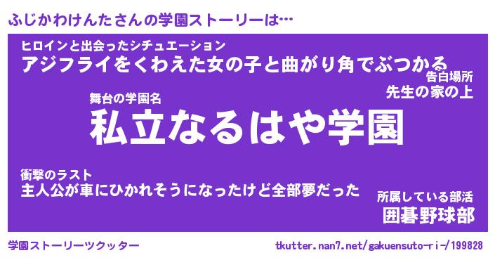 | 男性向けラノベタイトル風あだ名 | 『ふじかわけんたの憂鬱』 |