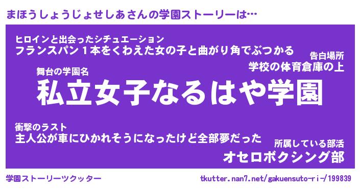 | 番長 | まほうしょうじょせしあ、またの名を・・・!『鋼のシスコンまほうしょうじょせしあ番長』 |