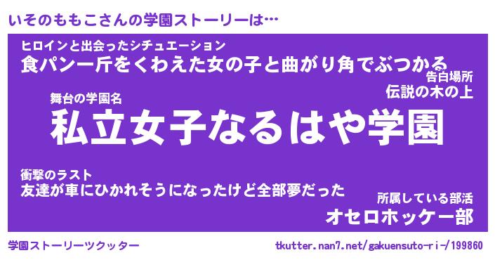 | 伝説のあだ名 | 『封印されしスナイパーいそのももこ』 |
