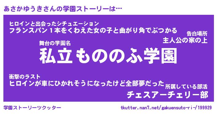 | 男性向けラノベタイトル風あだ名 | 『あさかゆうきの憂鬱』 |