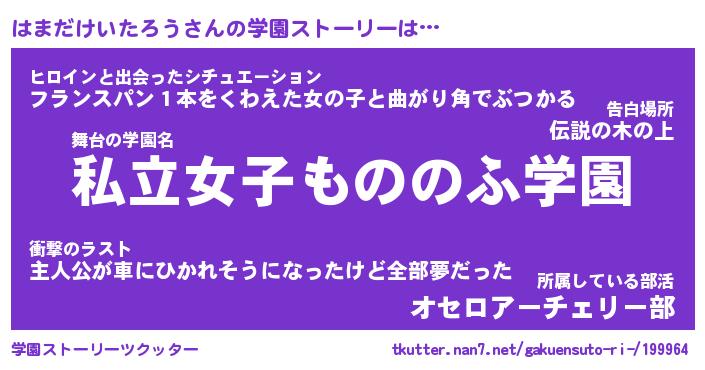 | 女子向けラノベタイトル風あだ名 | 『はまだけいたろう姫と円卓の騎士』 |