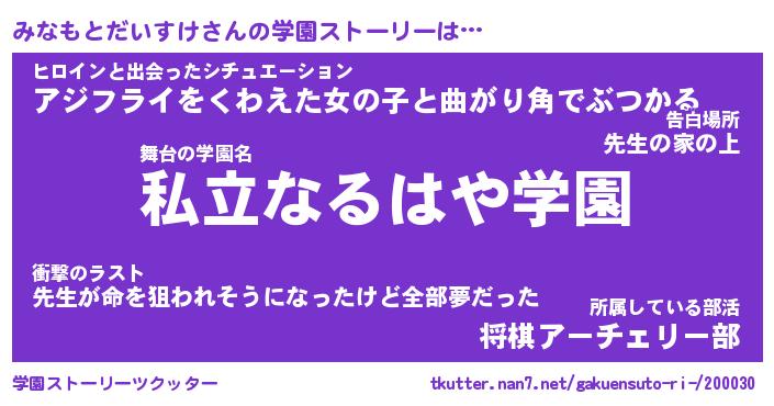 | 男性向けラノベタイトル風あだ名 | 『みなもとだいすけの憂鬱』 |