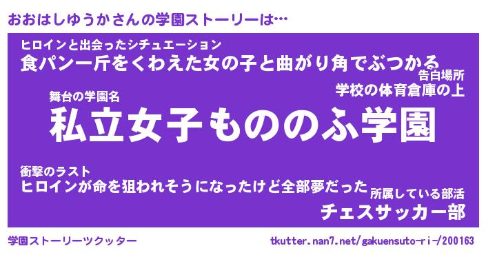 | 男性向けラノベタイトル風あだ名 | 『オオハシユウカアートオンライン』 |