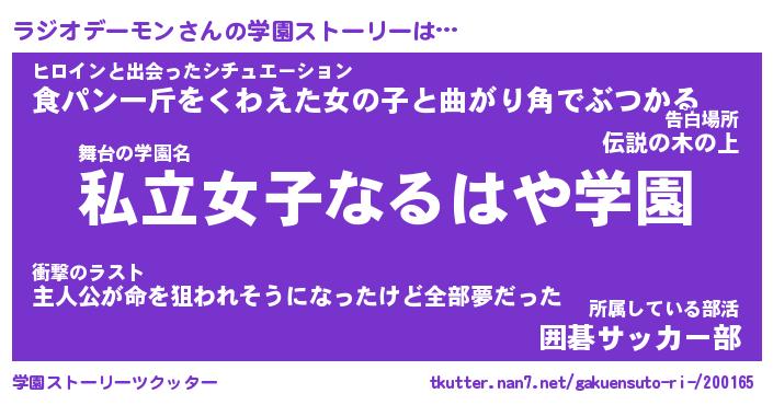 | 先生 | ラジオデーモン先生が勤める学校名『都立ささくれ中学校』 |