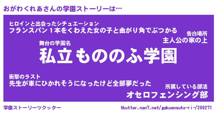 | 男性向けラノベタイトル風あだ名 | 『おがわくれあの憂鬱』 |