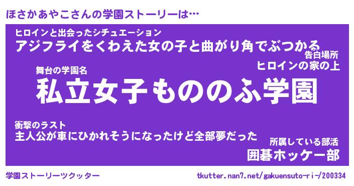 | 男性向けラノベタイトル風あだ名 | 『ホサカアヤコアートオンライン』 |