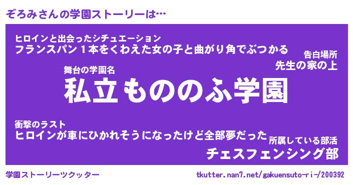 | 男性向けラノベタイトル風あだ名 | 『ぞろみの憂鬱』 |