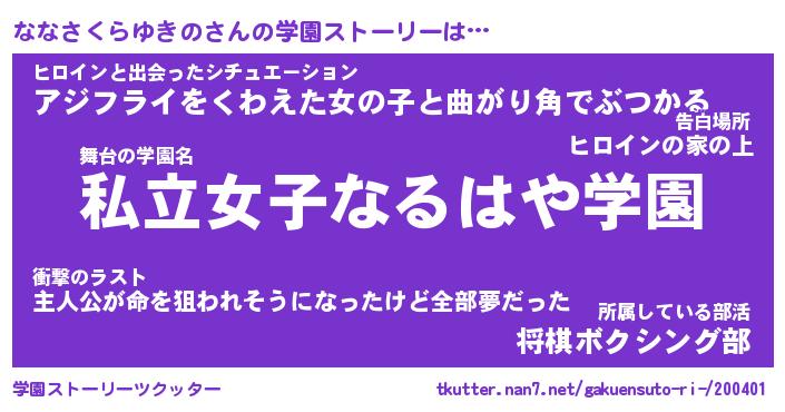 | 男性向けラノベタイトル風あだ名 | 『ナナサクラユキノアートオンライン』 |