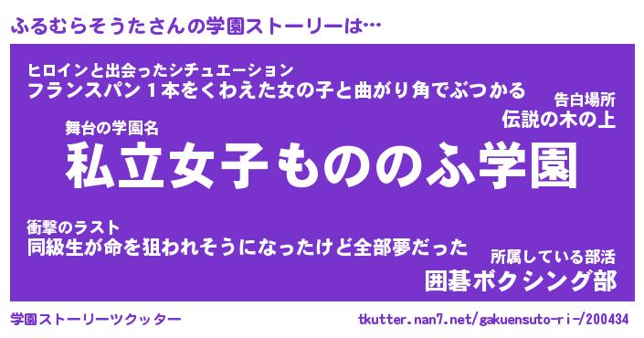 | 女子向けラノベタイトル風あだ名 | 『誰かこのふるむらそうたを説明してください! ~契約から始まるウェディング~』 |