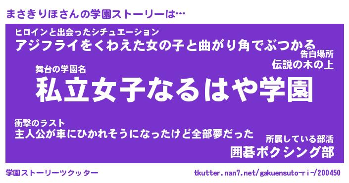 | 女子向けラノベタイトル風あだ名 | 『誰かこのまさきりほを説明してください! ~契約から始まるウェディング~』 |