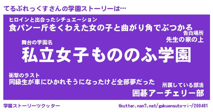 | 告白場所 先生の家の上 …「ふぃぎゅこ」 | 2月17日 06:24 |