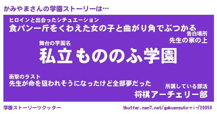 | 女子向けラノベタイトル風あだ名 | 『かみやま姫と円卓の騎士』 |
