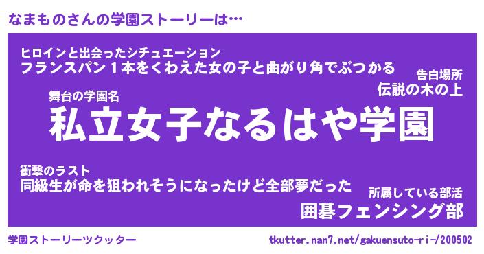 | ヒーロー風カッコイイあだ名 | 『スーパーナマモノ』『魔戒騎士ナマ』 |