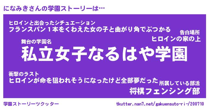 | 意味不明あだ名 | 『ペロリンになみき』『永久保存になみき』 |
