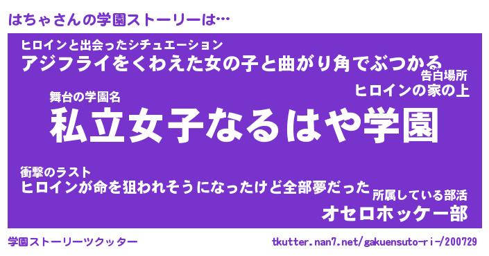 | 意味不明あだ名 | 『ペロリンはちゃ』『はちゃフォーエバー』 |