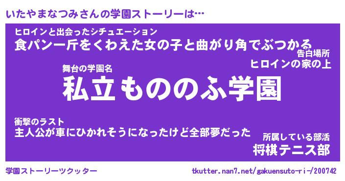 | 男性向けラノベタイトル風あだ名 | 『いたやまなつみの憂鬱』 |