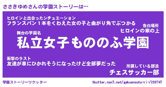 | ファンタジー風あだ名 | 『ササフェル』『エターナルササキユメー』 |