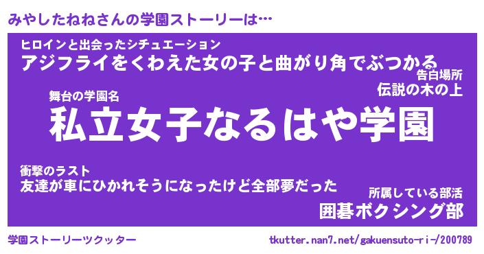 | ヘコむあだ名 | 『みやにゅー』『なまこ酢』 |