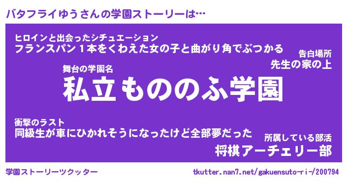 | ヒーロー風カッコイイあだ名 | 『スーパーバタフライユウ』 |